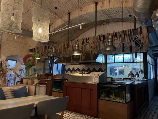 Інтер'єр ресторану прикрашений в морському стилі, що створює неповторну атмосферу одеського узбережжя. Декор, що нагадує про море і портові міста, додає колориту та підкреслює тему закладу.